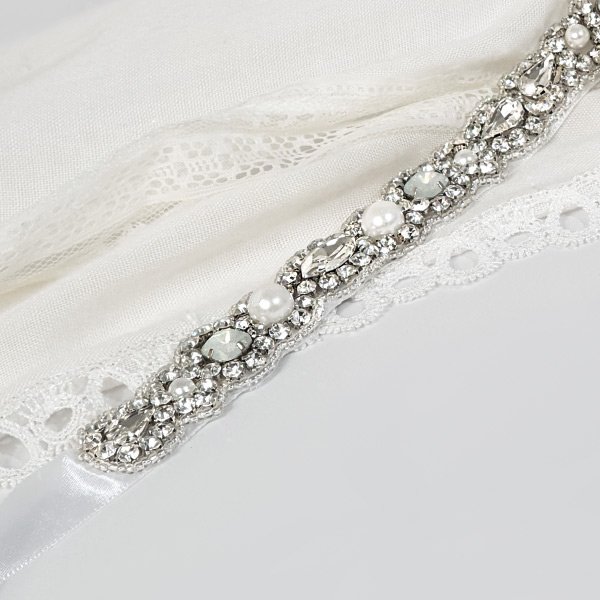 Email us your preferred ribbon length for each side, we will add a row of Swarovski crystals at each end