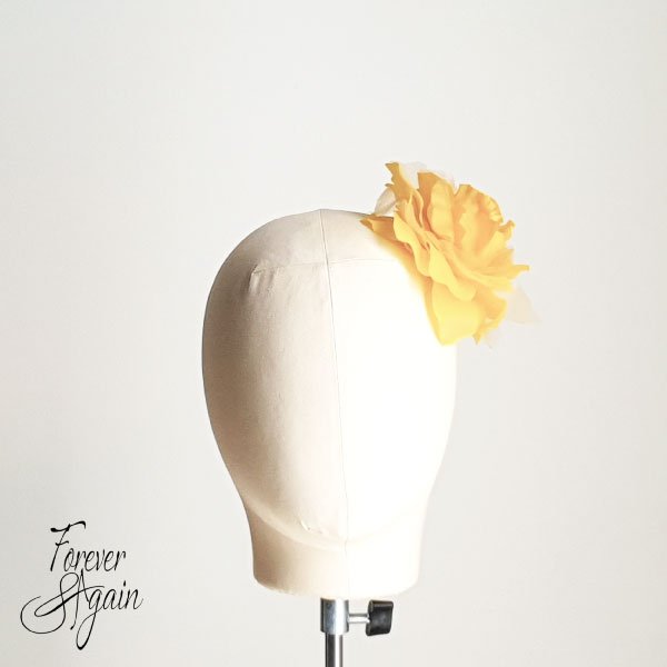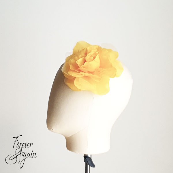 Type: Silky yellow coloured flower, secured in place with clip fastener